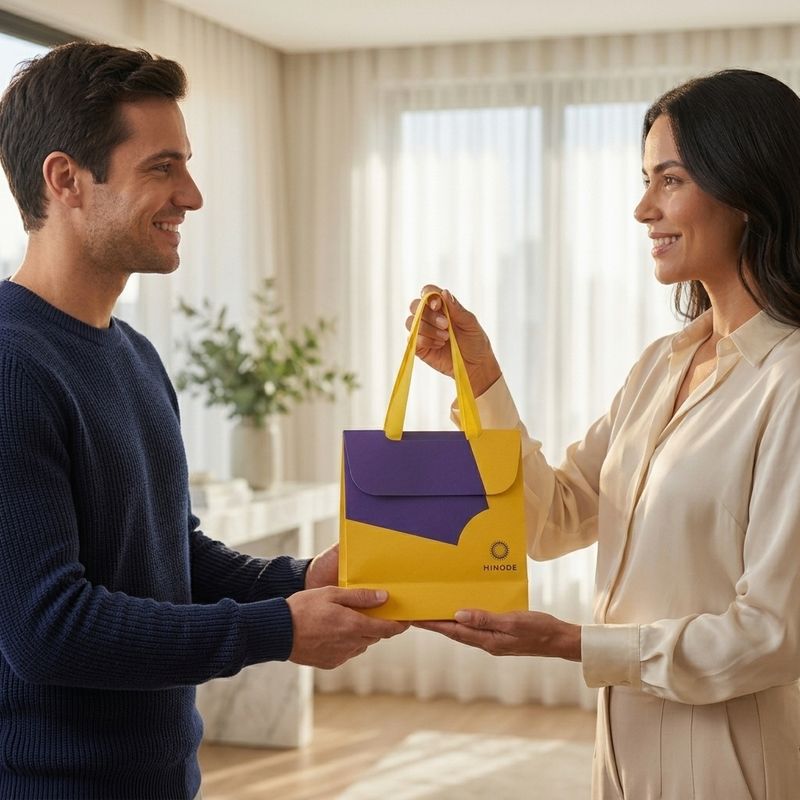 Reforça a experiência de marca, apresentando o presente com a qualidade e o reconhecimento que a linha Hinode oferece.