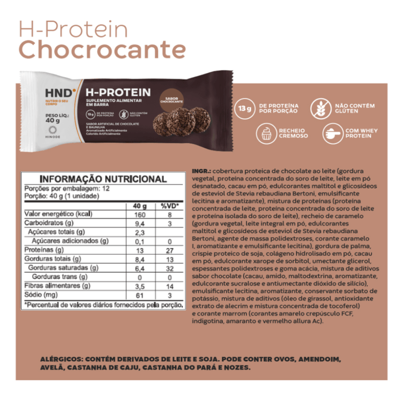 H- Protein Suplemento Alimentar em barra Sabor Chocrocante HND 40g