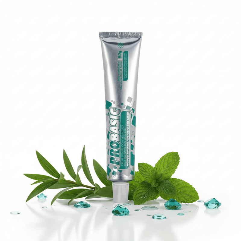 Gel Dental Pró Basic garante a remoção da placa bacteriana e o combate à formação de cáries, mantendo uma sensação de frescor prolongado graças à sua composição ideal para o uso contínuo.