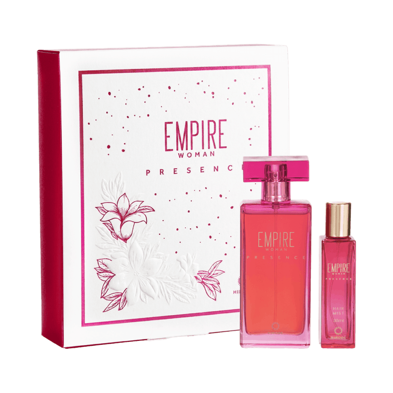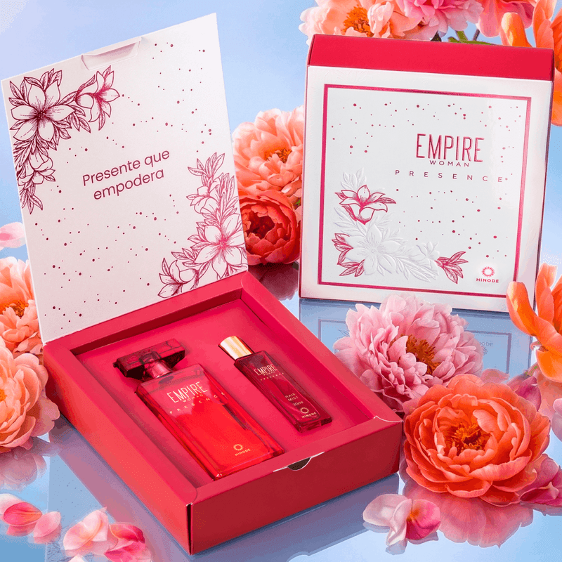 Este kit exclusivo é composto pela fragrância Empire Woman Presence e itens complementares de cuidados corporais da mesma linha, idealizados para proporcionar uma experiência completa de perfumação e sofisticação.