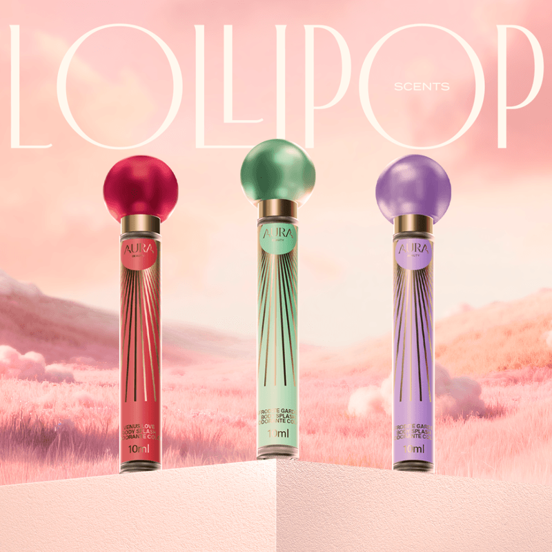 No universo de AURA Beauty, Lollipop Scents não é apenas um kit — é um feitiço portátil, um convite para brincar com o místico e o cotidiano. Basta um gesto, um toque, e você é transportada para um mundo onde as deusas sorriem, dançam e sussurram ao seu ouvido.