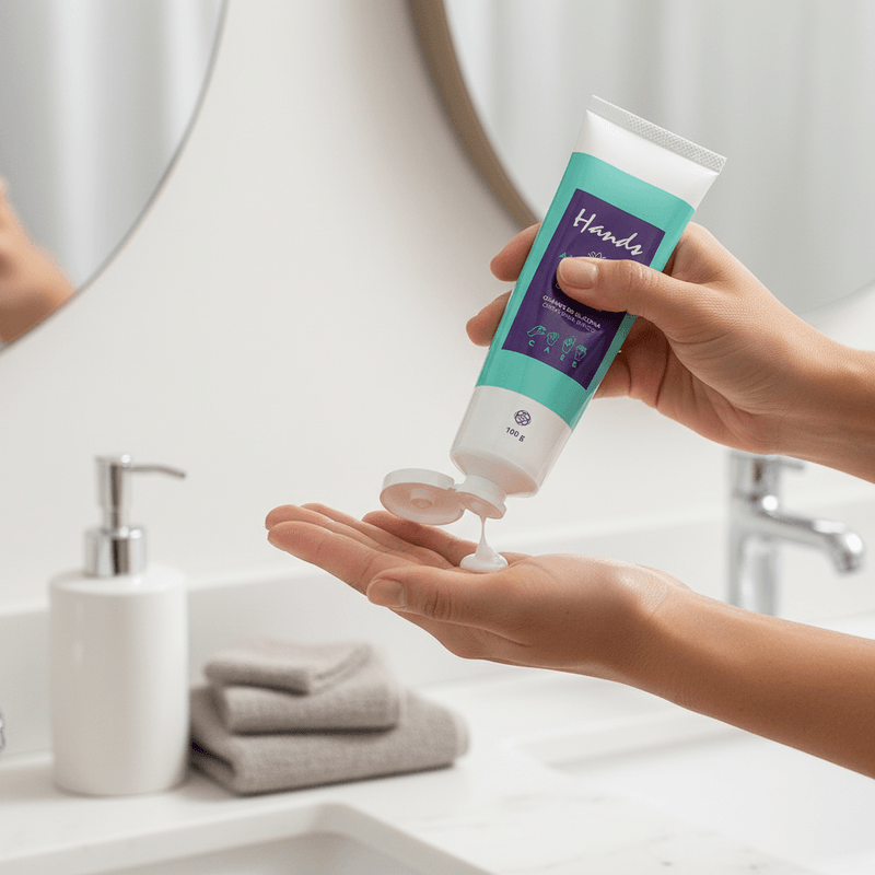 A combinação de silicone e glicerina fortalece a barreira cutânea, tornando a pele das mãos mais resistente.