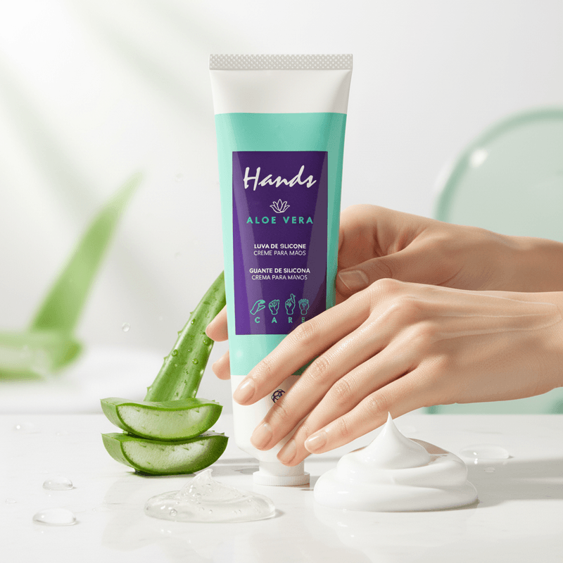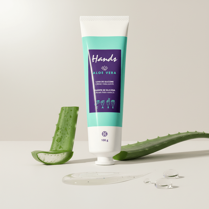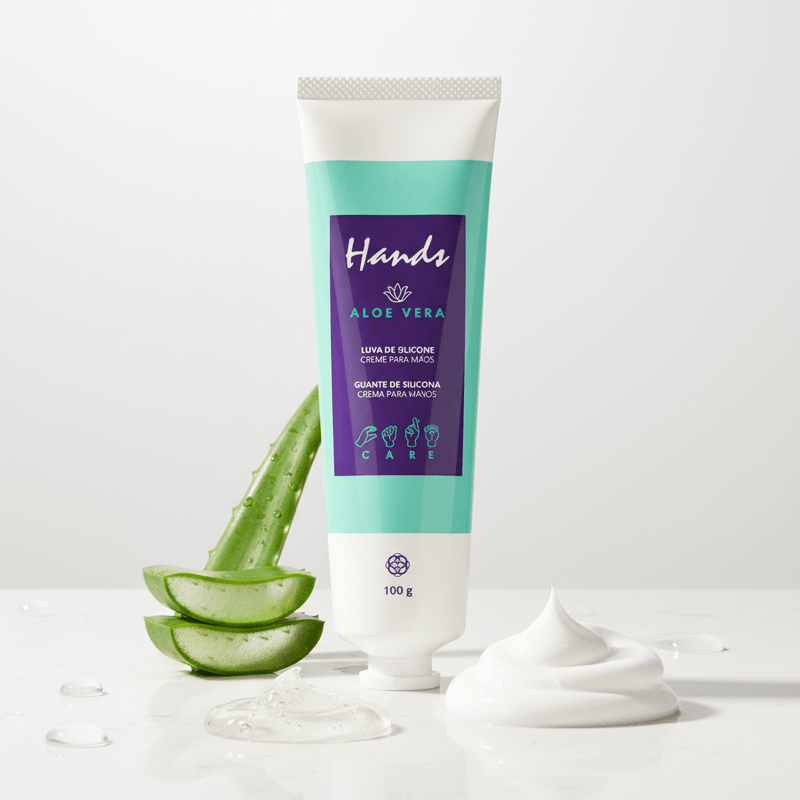 Sua formulação avançada é um diferencial tecnológico, combinando a potente ação formadora de filme do silicone e da glicerina, que cria uma barreira protetora que sela a umidade natural da pele. Enriquecido com a poderosa Aloe Vera, o creme Hands oferece propriedades regenerativas e antioxidantes, combatendo o ressecamento e mantendo a vitalidade da pele com uma textura leve e de rápida absorção.
