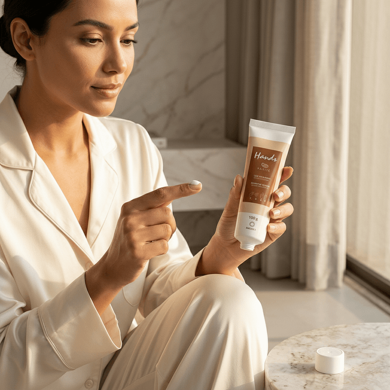 Esta fórmula avançada combina a eficácia formadora de filme do silicone com a riqueza emoliente da Manteiga de Karité. Juntos, eles criam uma barreira invisível, atuando como uma luva que sela a umidade natural da epiderme, protegendo as mãos contra o ressecamento causado por agentes externos. O resultado é uma pele com resistência renovada, profundamente nutrida e com uma textura incrivelmente suave.