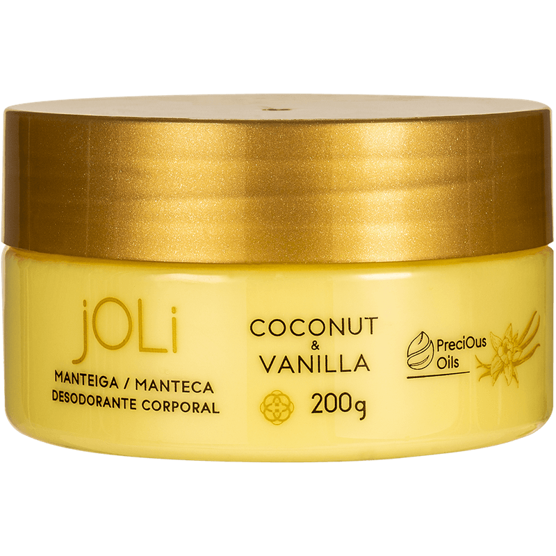 Sinta a diferença de uma pele profundamente hidratada, revitalizada e com um toque aveludado que dura o dia todo. Utilize a Manteiga Corporal Joli em áreas mais secas ou sempre que desejar um cuidado extra. Permita-se este momento de bem-estar e eleve a sua rotina de beleza, revelando uma pele radiante e irresistível com a essência marcante de Vanilla e Coco.