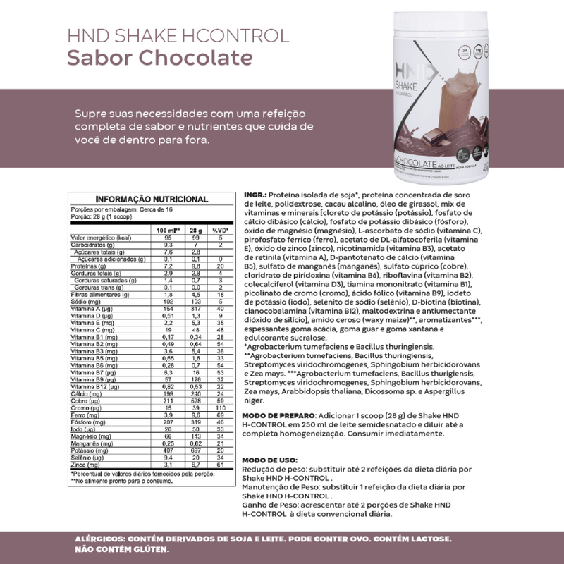 Para resultados otimizados no controle de peso, combine o uso do Shake H-Control com uma dieta equilibrada e exercícios regulares. Consulte um profissional de saúde antes de iniciar qualquer novo plano alimentar. Experimente o Shake H-Control Sabor Chocolate ao Leite HND e transforme sua dieta com saúde e sabor!